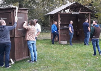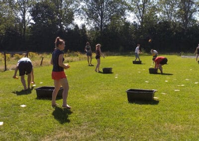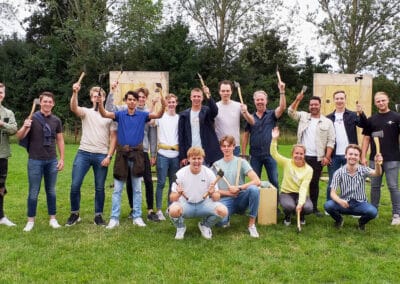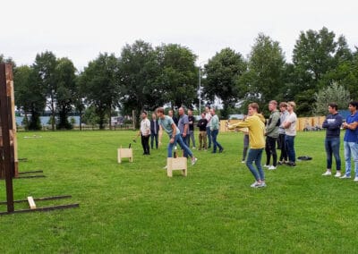 Competitieve en teamgerichte opdrachten zoals een zeskamp of axe throwing.